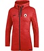 Sport en vrijetijd zijn in het dagelijkse leven steeds meer met elkaar verbonden. Daarom begeleidt JAKO jou vanaf nu naar de sport en door het dagelijkse leven in de hoogwaardige Basics PREMIUM. De jas met kap van deze lijn heeft een sportieve snit en een hedendaagse gemeleerde look. Dat typeert de Basics PREMIUM. Zijn structuur en mix van twee kleuren legt een link naar het asfalt waarop het leven zich afspeelt in de grootstad. De jas met kap heeft een casual kap die, wanneer de omstandigheden het vragen, over het hoofd getrokken kan worden. Dankzij de rits vooraan, kan de jas met kap gemakkelijk aan en uit getrokken worden. Deze jas met kap is verkrijgbaar in zes kleurvarianten en is vervaardigd uit functioneel Double-Tech-Knit materiaal. Dit past zich aan de contouren van uw lichaam aan en benadrukt uw sportieve figuur. De uitrusting is ook geschikt als metgezel voor teams, eventueel afgewerkt met gepersonaliseerde bedrukking. De jas met kap is verkrijgbaar in de maten S - 4XL voor heren en in getailleerde damessnit in maten 34 - 44.
