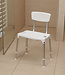 Douche stoel Quattro met Rugleuning, stabiel zittend met leuning voor de rug, voorzien van afwaterings-opening, pootjes voorzien van antislip dopjes. Veilig en comfortabel zittend douchen, zonder wandmontage.